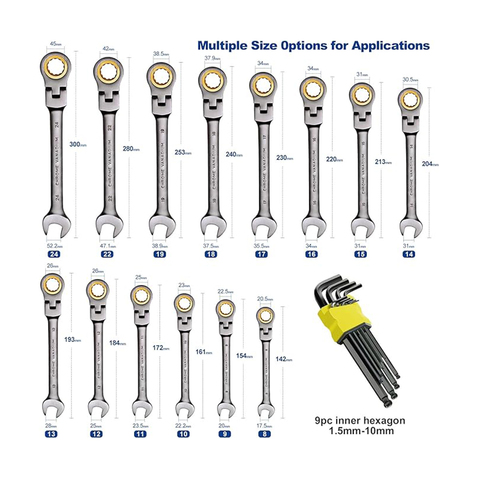 Personalizado Industrial CRV Spanner Set DIY Grade Mão Ferramenta com Flex Cabeça Ratchet Wrench para Medição Métrica para Reparação